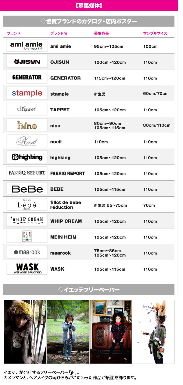 子供服サイト Jette イエッテ 13春夏カタログモデル募集